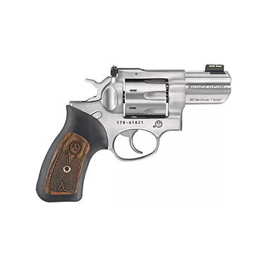 Tags: Revolver, 2.5", 357-Magnum, 7-Rounds, Silver, Satin, Rubber-&-Wood, 01774, Stainless-Steel, GP100, Adjustable-Rear-Sight-&-Fiber-Optic-Front, Revolvers, DA/SA