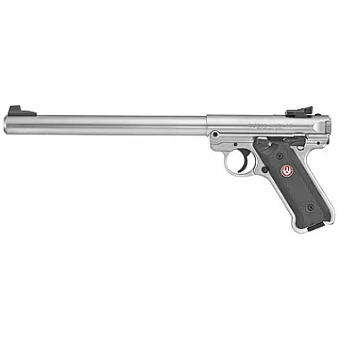 Tags: Semi-automatic, 10", 22-LR, 10-Rounds, Silver, Checkered, 40174, Stainless-Steel, Mark-IV, Target, Ambidextrous, Adjustable-Rear-Sight, Pistols---Metal-Frame, Bull-Barrel